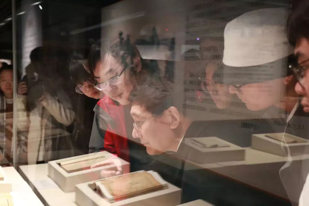 时间随着看展的脚步慢慢流走,中午大家用餐过后,回到国家典籍博物馆的其他展厅继续看展。其中,师生们来到了“文献名邦 书香绍兴——越地历史文脉展”进行参观。绍兴是历史悠久、人文荟萃的江南名城。有着2500多年建城史的绍兴,无论是官方还是民间,对历史文物、古代典籍的收藏、保护、传承都犹为重视,是实至名归的“文献名邦”。同学们在这个展览中,有幸看到来自国家典籍博物馆和绍兴图书馆的越地珍贵文物,开阔了自己的眼界。