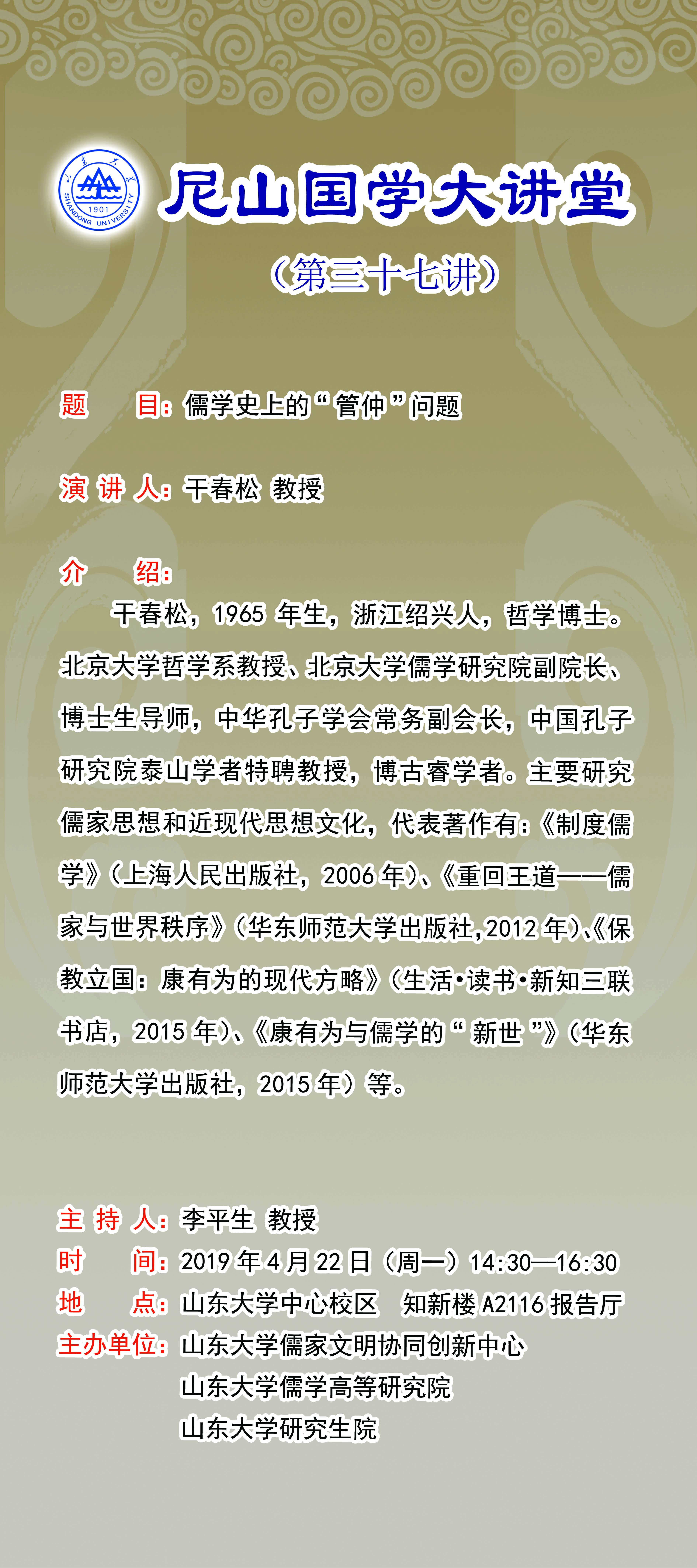 学术预告:尼山国学大讲堂第三十七讲