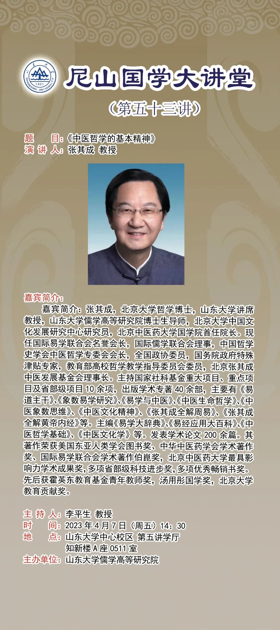 讲座预告|尼山国学大讲堂第五十三讲:张其成教授谈“中医哲学的基本精神”