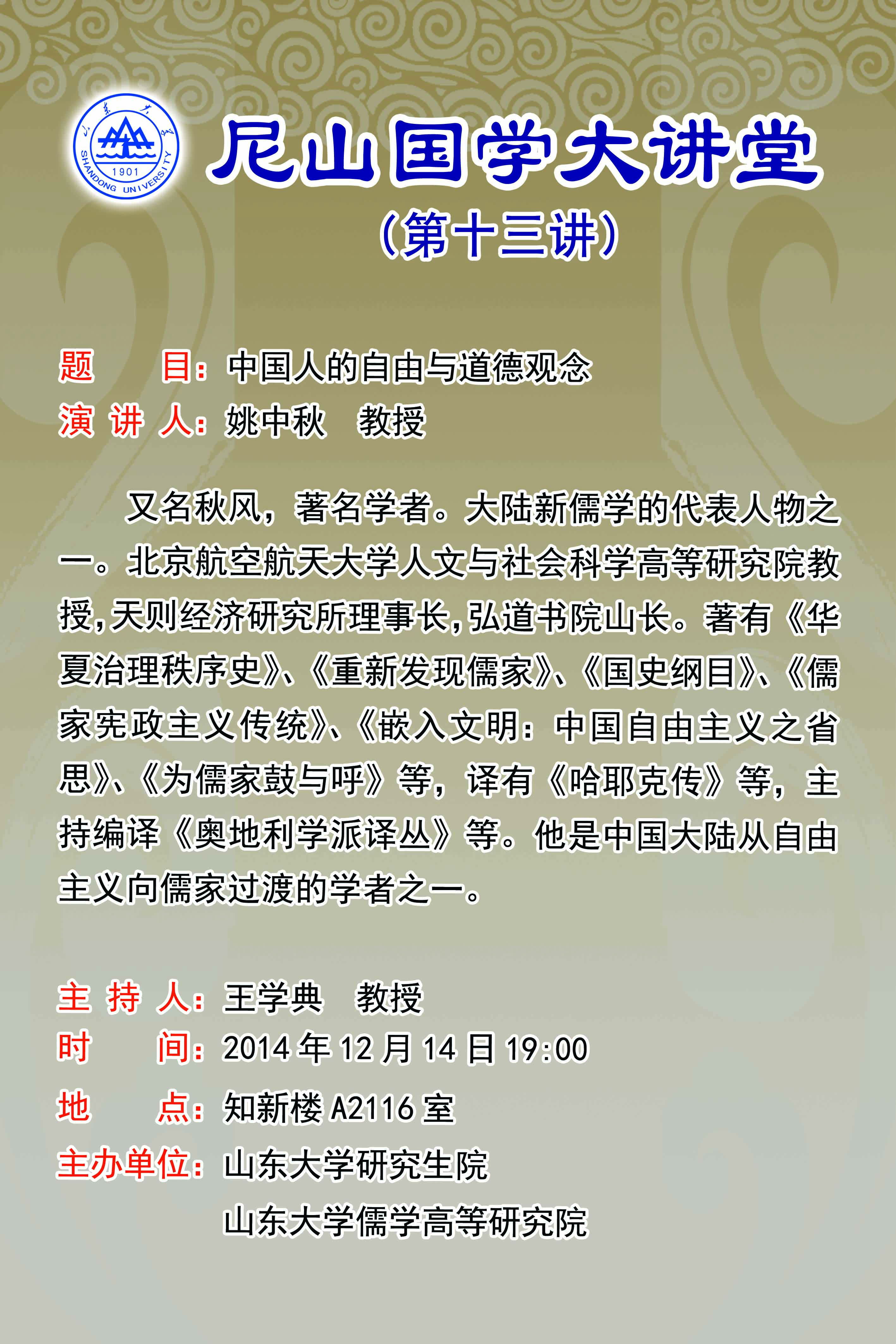 学术预告:尼山国学大讲堂第十三讲