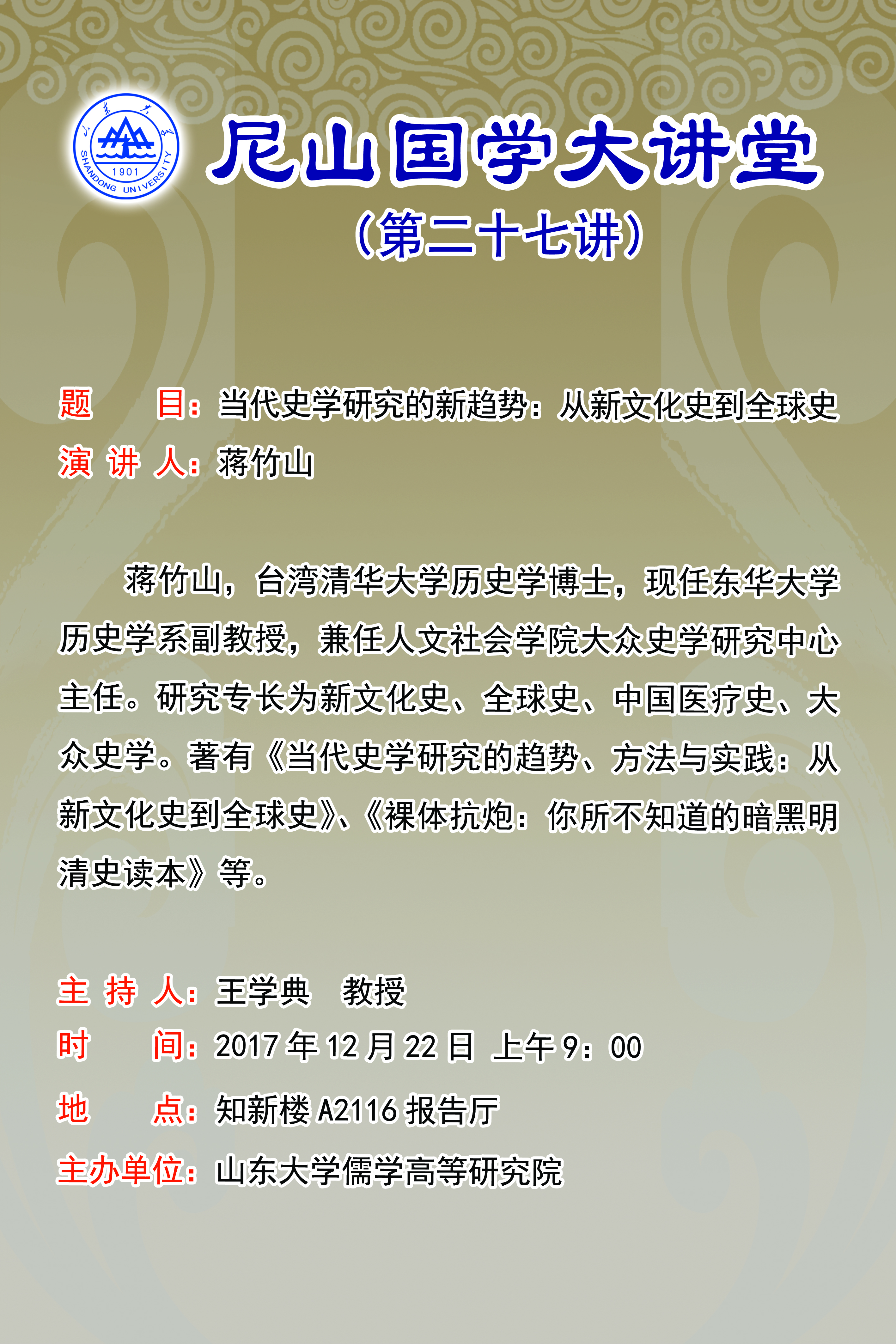 学术预告:尼山国学大讲堂第二十七讲