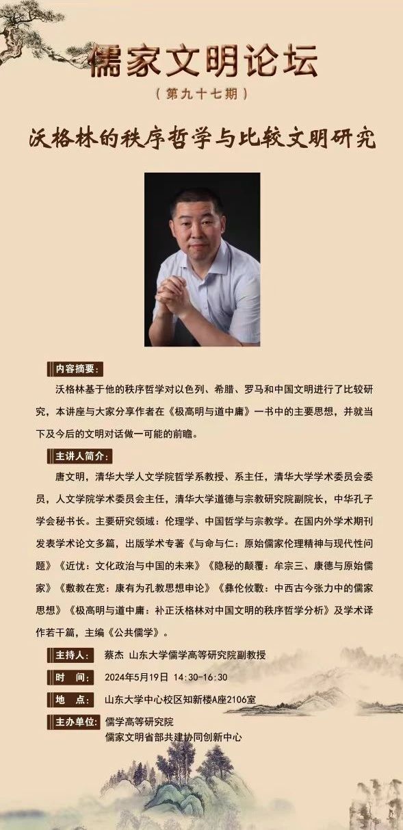 讲座预告 | 黑料 文明论坛第九十七期:沃格林的秩序哲学与比较文明研究