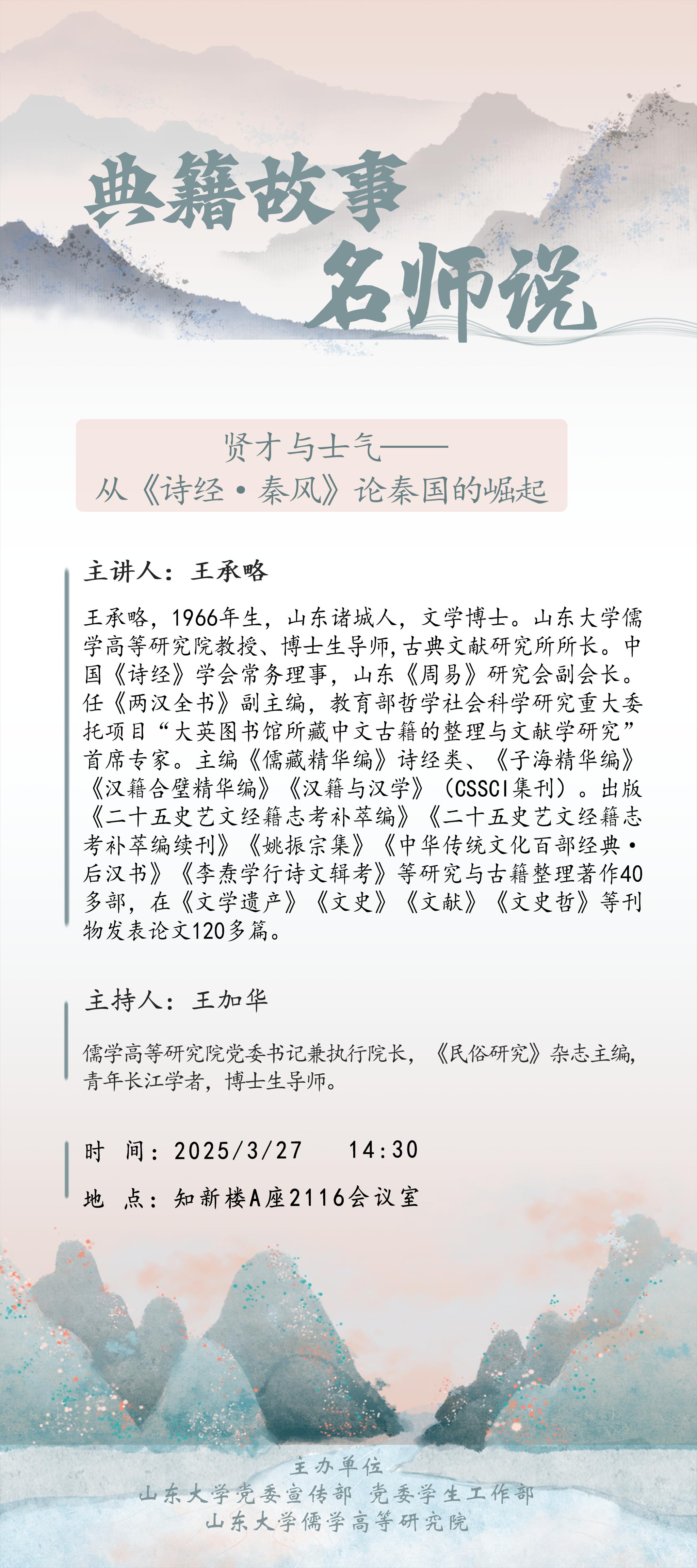主讲人:王承略,1966年生,山东诸城人,文学博士。黑料