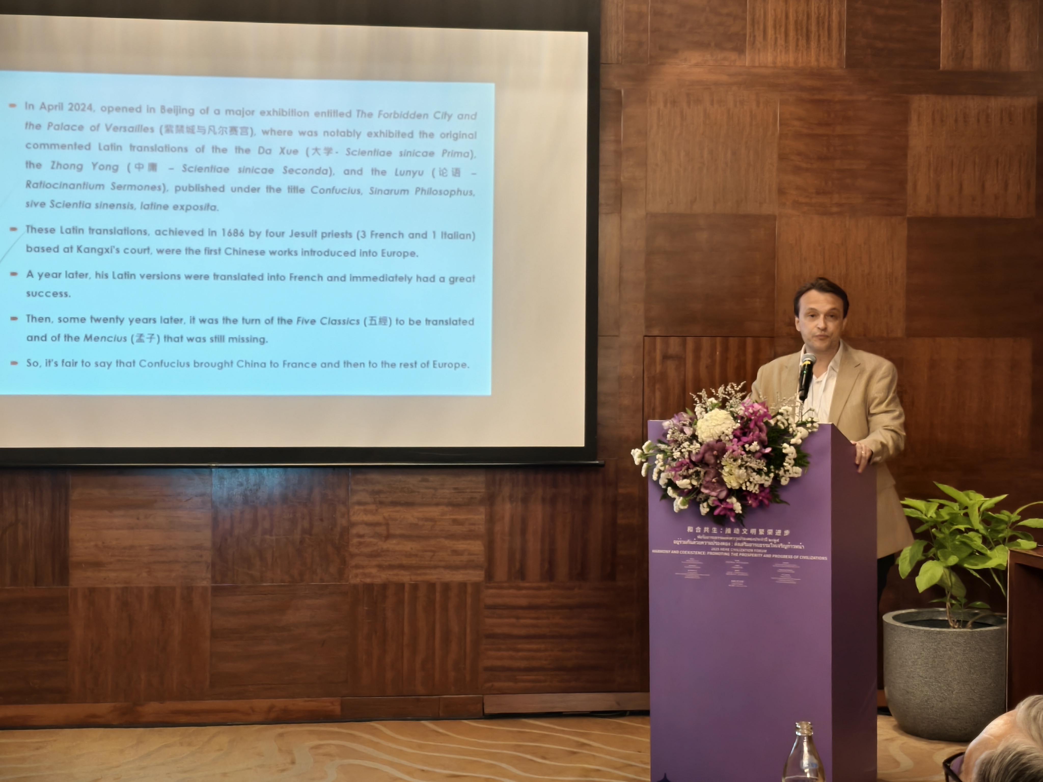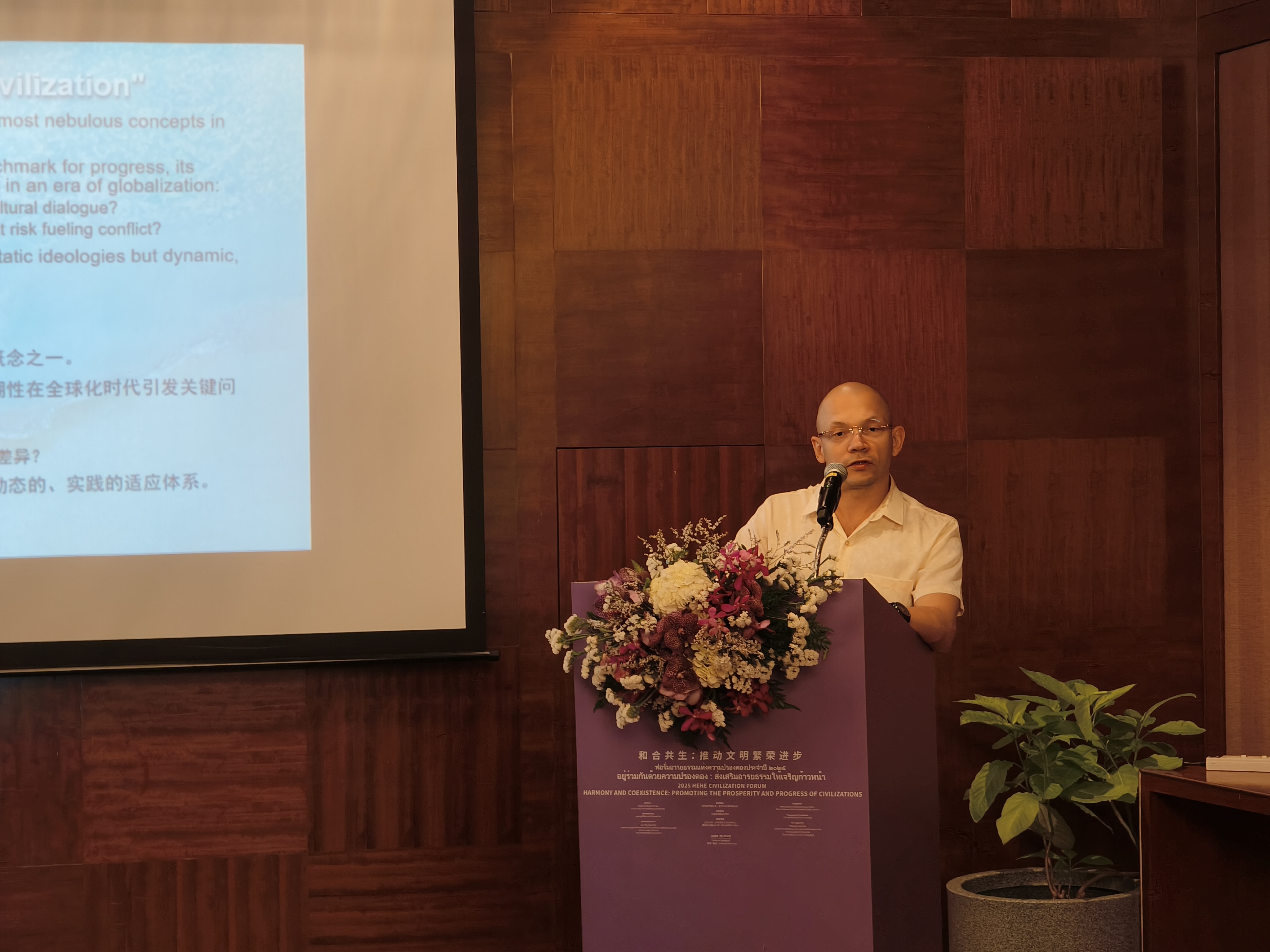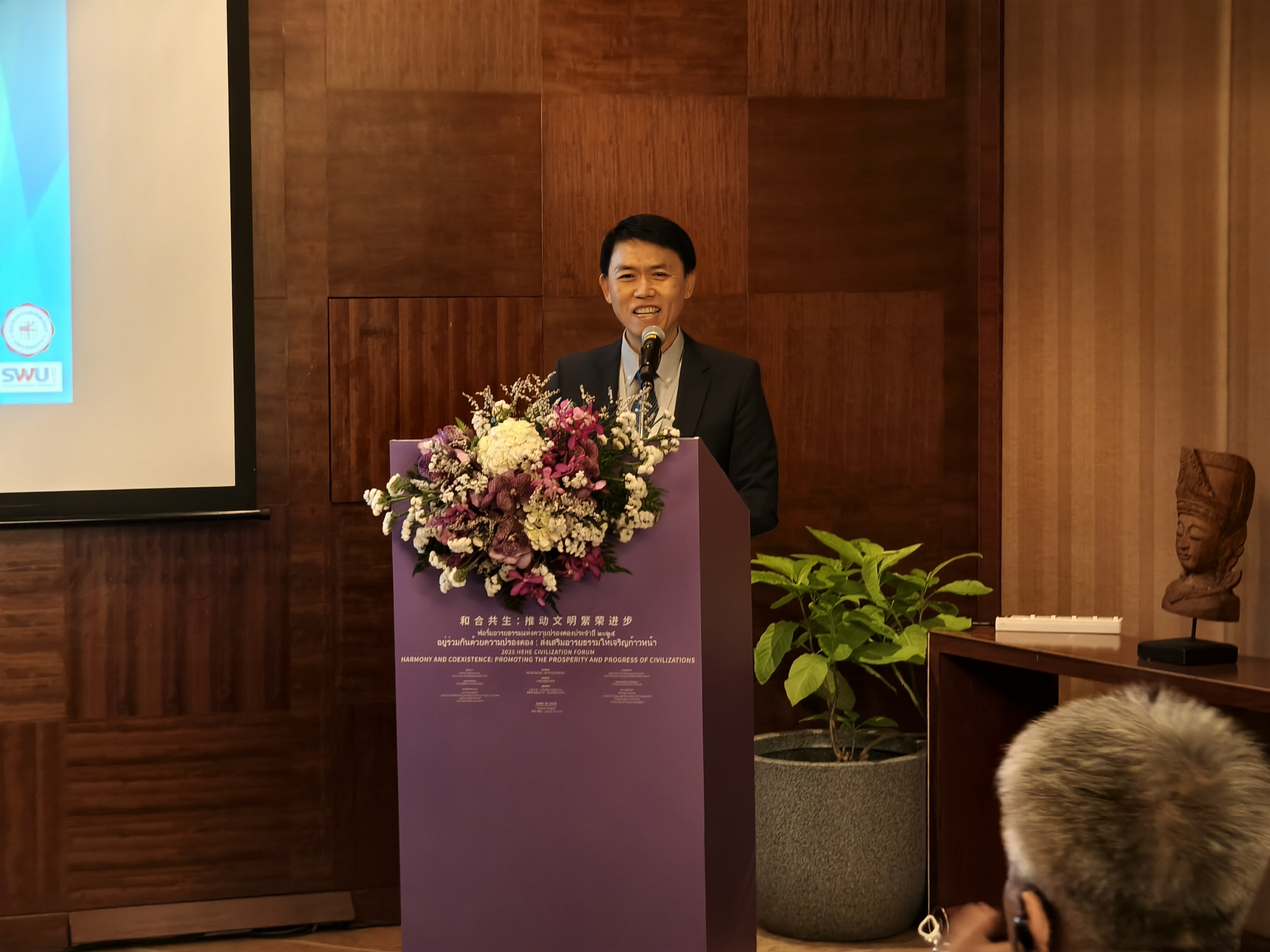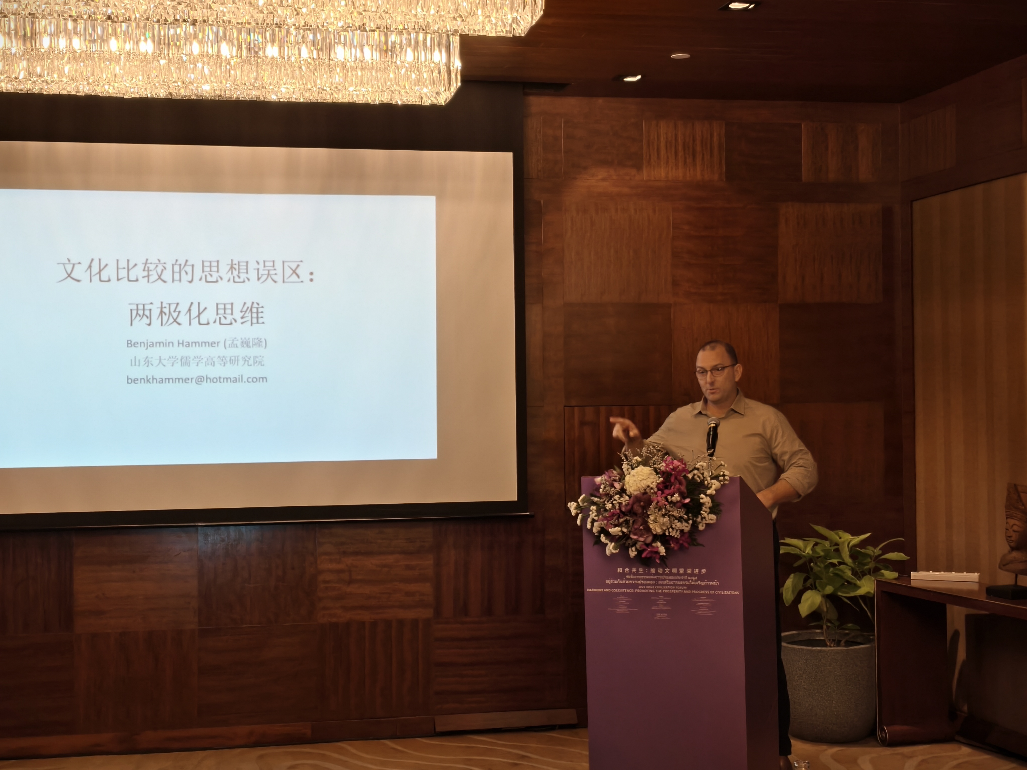 副教授、《文史哲》国际版执行主编孟巍隆(Benjamin Hammer),分别以“和而不同与文明共存”、“超越东西二元对立:泰国作为中西文明对话中的融合交汇点”、“孔子与启蒙哲学家:传统智慧与现代性的对话”、“文化比较的思想误区:两极化思维”为题发表演讲。