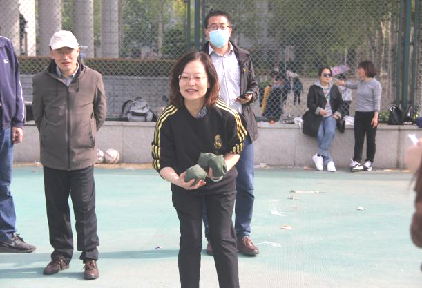第一个项目“踩气球”将整个运动场上的氛围瞬间点燃。在激烈的争夺中,老师们既要瞄准对手的气球,又要保护自己的气球,场面一度非常热闹。“明枪易躲,暗箭难防”,随着圈子的不断缩小,“幸存”的人数也不断减少。热烈的“争斗”后,李琳老师笑到最后,获得一等奖。