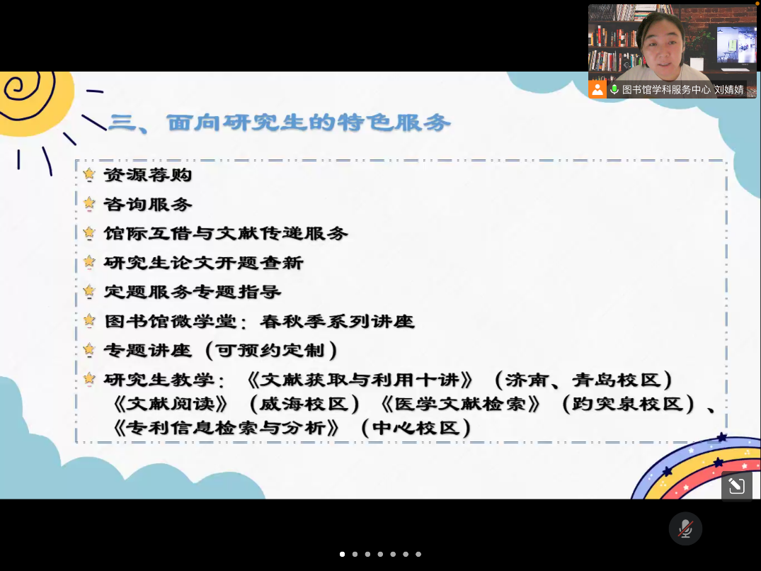 首先,刘婧婧老师强调了图书馆在学习科研中的重要作用,并提出作为研究生要具备相对独立的研究问题和分析问题能力。接下来刘老师从图书馆概况、图书馆资源和图书馆面向研究生的特色服务等三个方面具体向同学们进行讲解。黑料