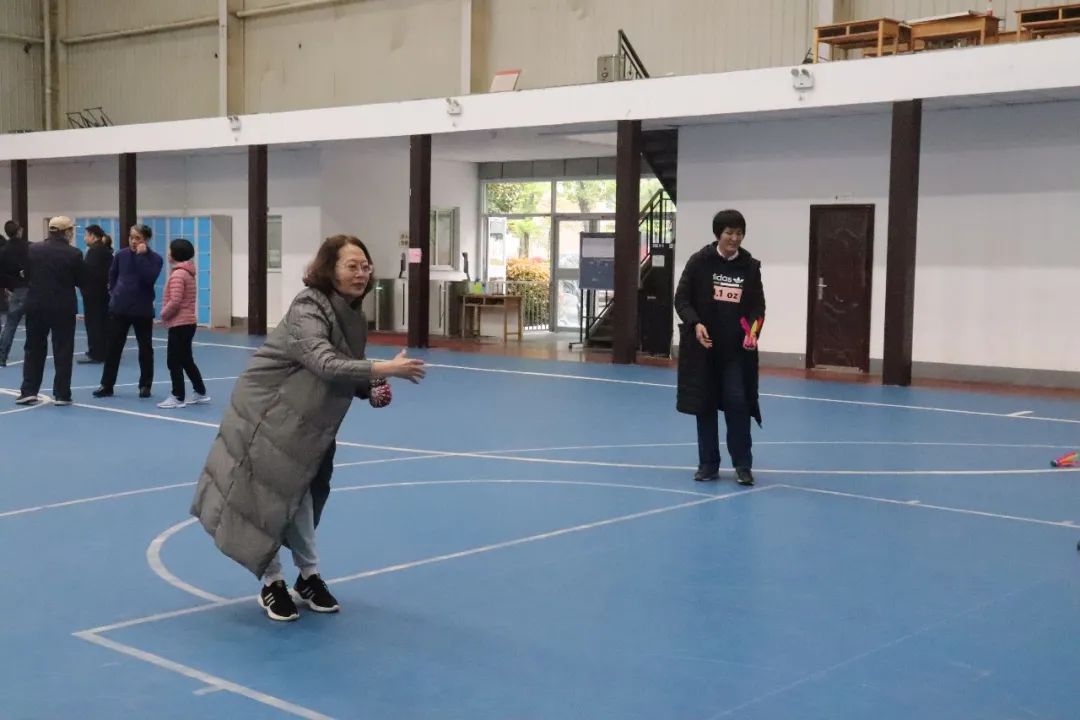 最后一个集体项目“曲回运球”在场馆东北侧进行,所有老师分成四组竞赛,小小的网球滚在球拍上,随着老师稳健的步伐快速地传递着,最终一组老师凭借着又稳又快的配合获得第一。