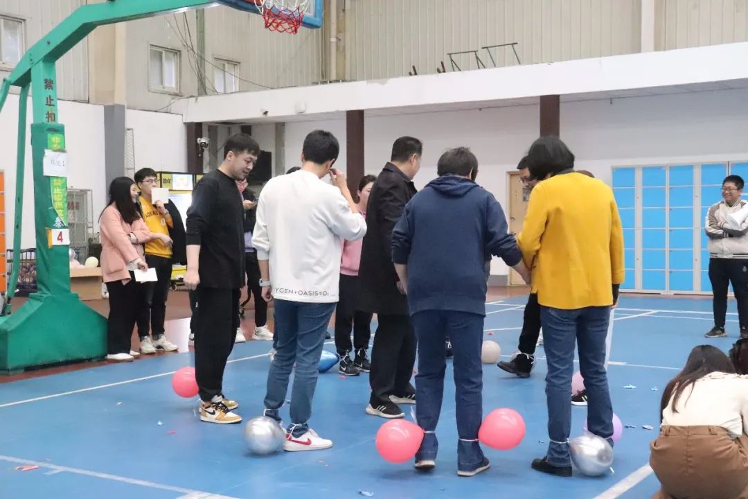 随着一声哨响,第四届教职工趣味运动会拉开了序幕。第一个项目“踩气球”将整个场馆内的气氛推向了高潮。老师们身手矫捷、走位灵活,躲避、进攻好不热闹,随着比赛场地的一步步缩小,气球爆炸声频频传出,比赛状况愈发热烈,经过一番激烈的角逐,刁统菊老师突出重围,斩获第一。