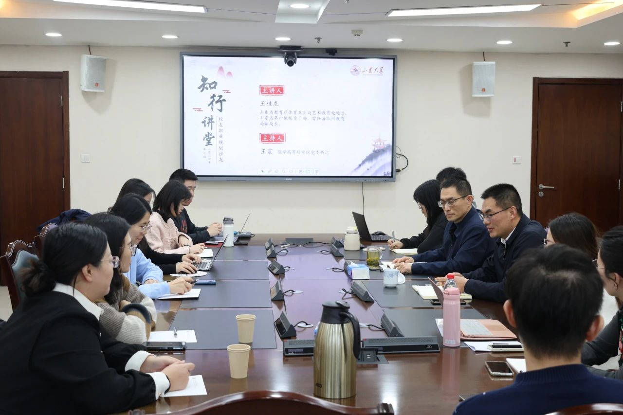 第七期“知行讲堂——校友职业规划沙龙”在知新楼A1916成功举办。山东省教育厅体育卫生与艺术教育处处长王桂龙受邀主讲。