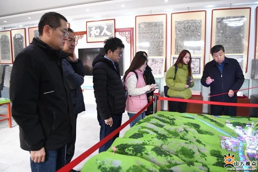 执行院长王加华教授、齐鲁师范学院文学与历史学院副院长朱振华教授、章丘区文旅局副局长张晴带领实践团本硕博成员开展调研。在三德范党建工作区书记张江的陪同下,调研团走访了三德范村石刻馆、三德范扮玩展馆、三德范档案馆、陈家巷胡同博物馆等景点,在深入体验传统民俗风情过程中挖掘文化“两创”发展的新动能。