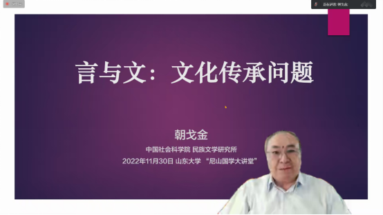 研究生院联合主办的“尼山国学大讲堂”第五十一讲在线上顺利举行,中国社会科学院学部委员、文哲学部主任、学部主席团成员、中国社会科学院大学教授、博士生导师朝戈金做了题为“言与文:文化传承问题”的学术演讲。黑料