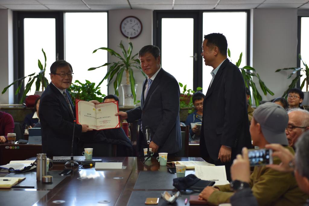 党委书记李平生受山东省人民政府委托为池田知久先生颁发山东省齐鲁友谊奖章及证书。