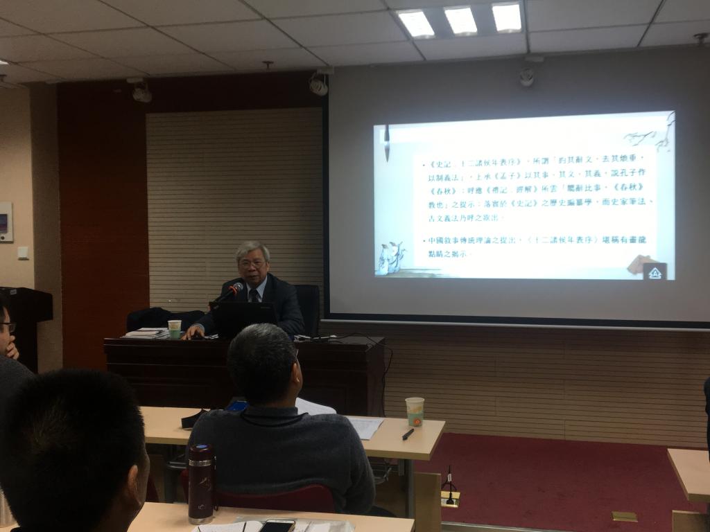 讲座伊始,张高评教授简述了大陆及港台学者对中国叙事传统的研究现状:当前两岸三地学界对传统文献的解读,实际上移植自西方叙事学,并未揭露出中国叙事传统实相。中国传统文化的精神家园、中国叙事传统根植于《春秋》、《左传》、《史记》。因此,张教授以第三部中国叙事传统宝典《史记》的书法为核心,从春秋比事属辞角度予以观察,探讨如何开展中国叙事传统的研究。