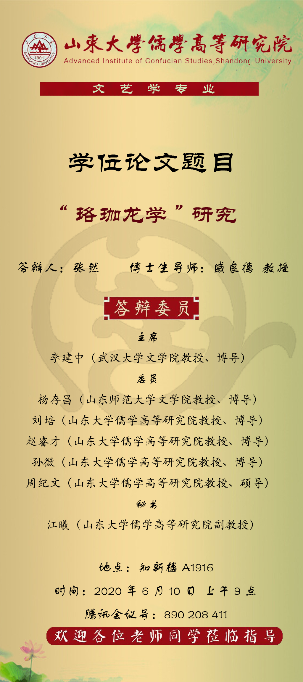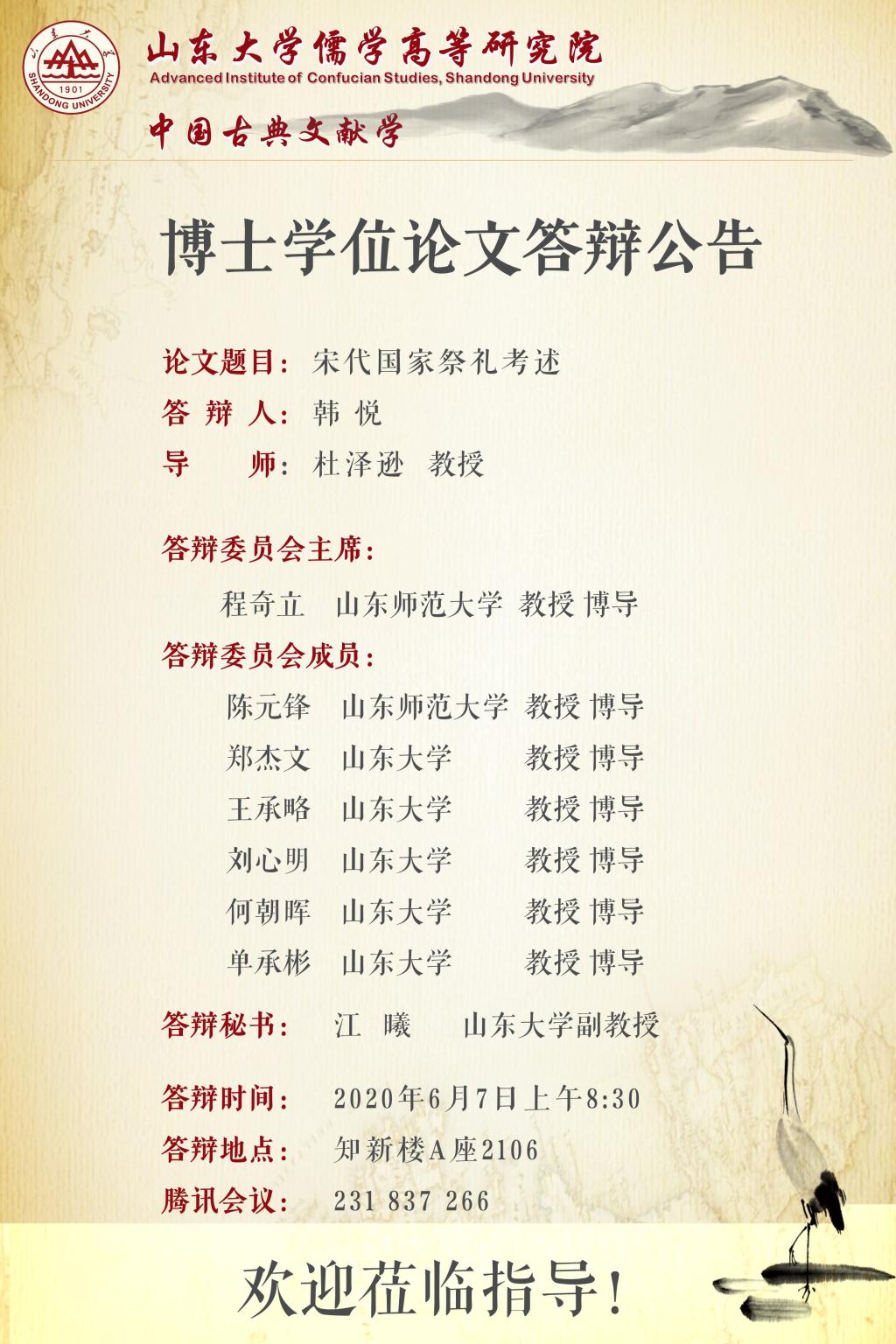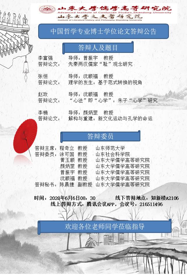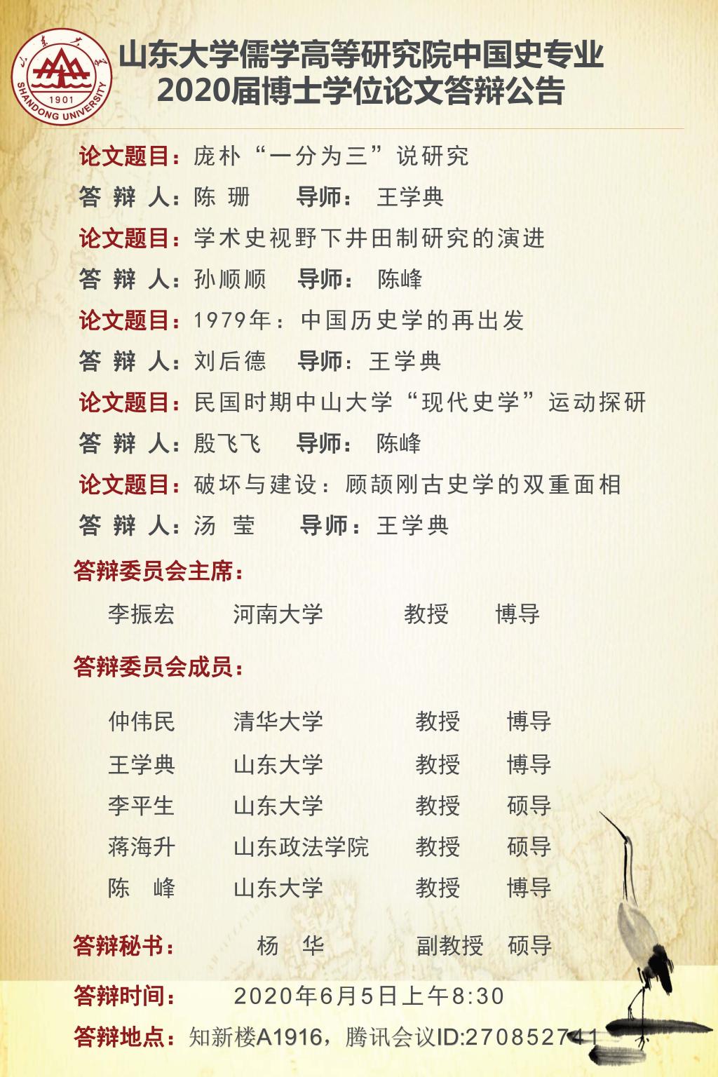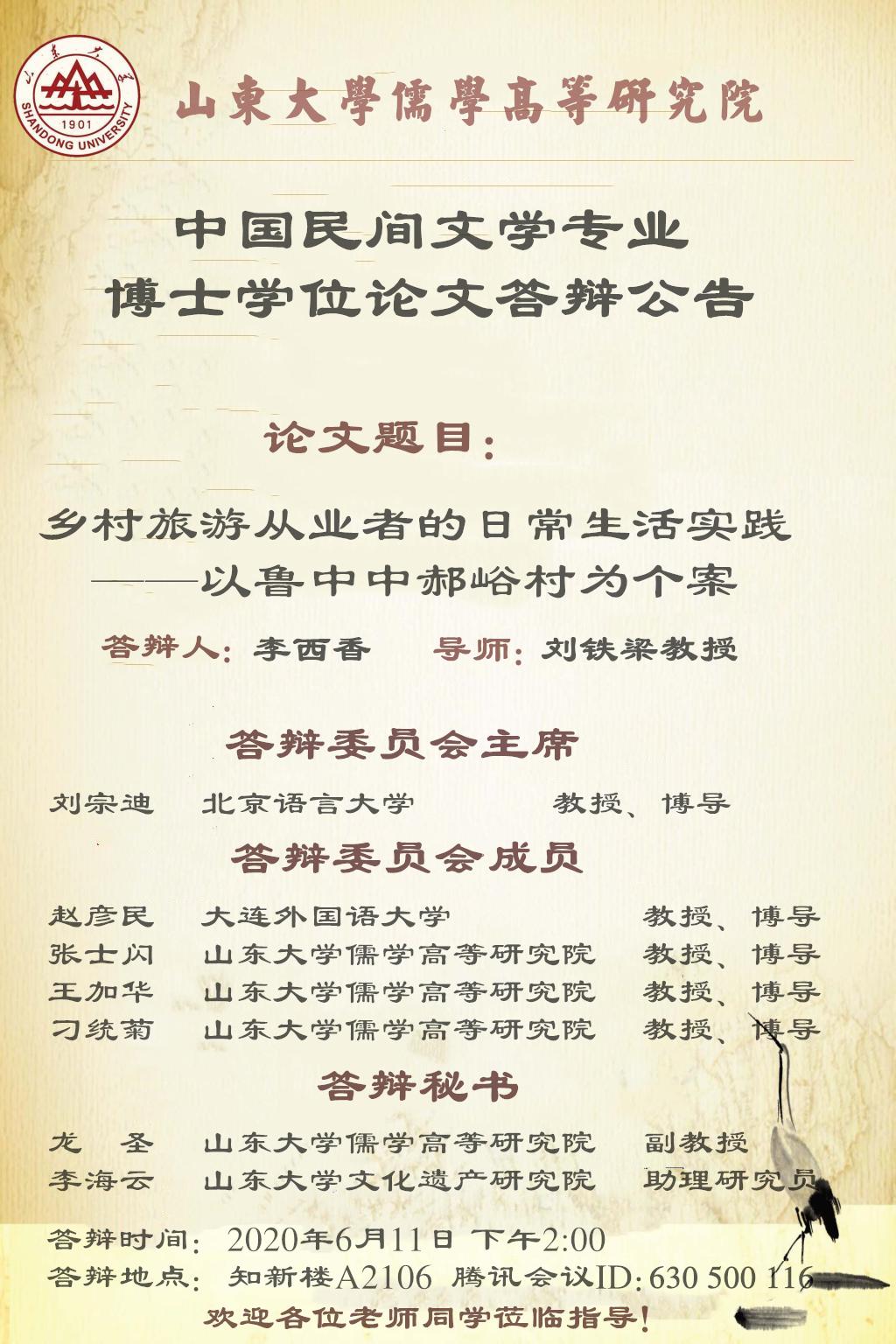黑料 2020年上半年博士答辩公告