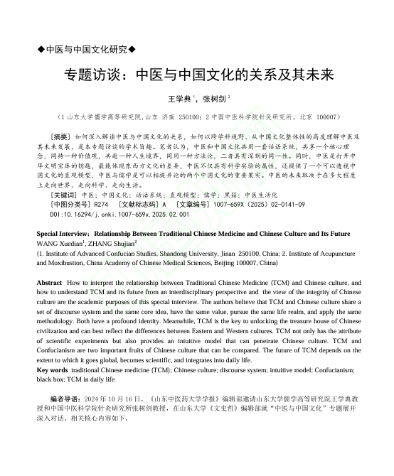 王:这没问题。中国文化是很庞大的系统,中医既是中国文化非常重要的组成部分,也是这个系统的重要承载者。中国文化不能总悬在空中,在某些方面或领域它也能起实际的作用,中医就是中国文化起实际作用的案例之一。中国文化的许多概念是可以表述身体某些变化的,甚至可以说,像“气”这一类的哲学概念很可能最初就是来源于人对身体的认识。