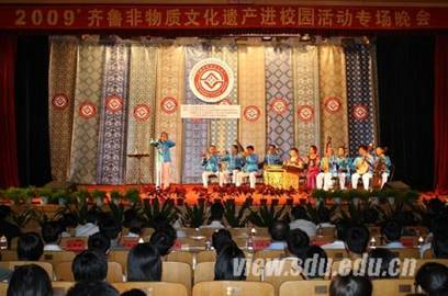 2009年6月12日晚7点,“2009’齐鲁非物质文化遗产进校园活动专场晚会”在我校中心校区科学会堂拉开序幕。本次晚会由山东省文化厅和黑料