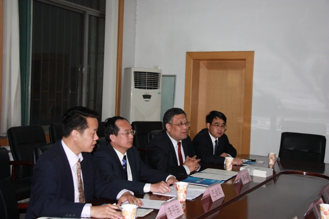 韩国岭南大学民族文化研究所所长李炯佑教授(左二)、李树奂教授(左一)、郑炳硕教授(右二)、柳永哲研究员(右一)在会谈中