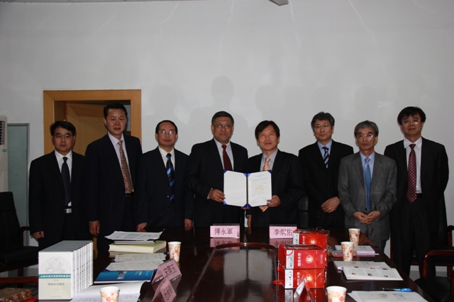 2009年4月17日,韩国岭南大学民族文化研究所所长李炯佑教授、柳永哲研究员,国史学科李树奂教授,哲学科郑炳硕教授,一行四人来我院访问。我院院长傅永军教授,院党总支巴金文书记,副院长李平生教授、宋开玉副教授接待了韩国客人一行,并与之会谈,签署了双方合作协议。