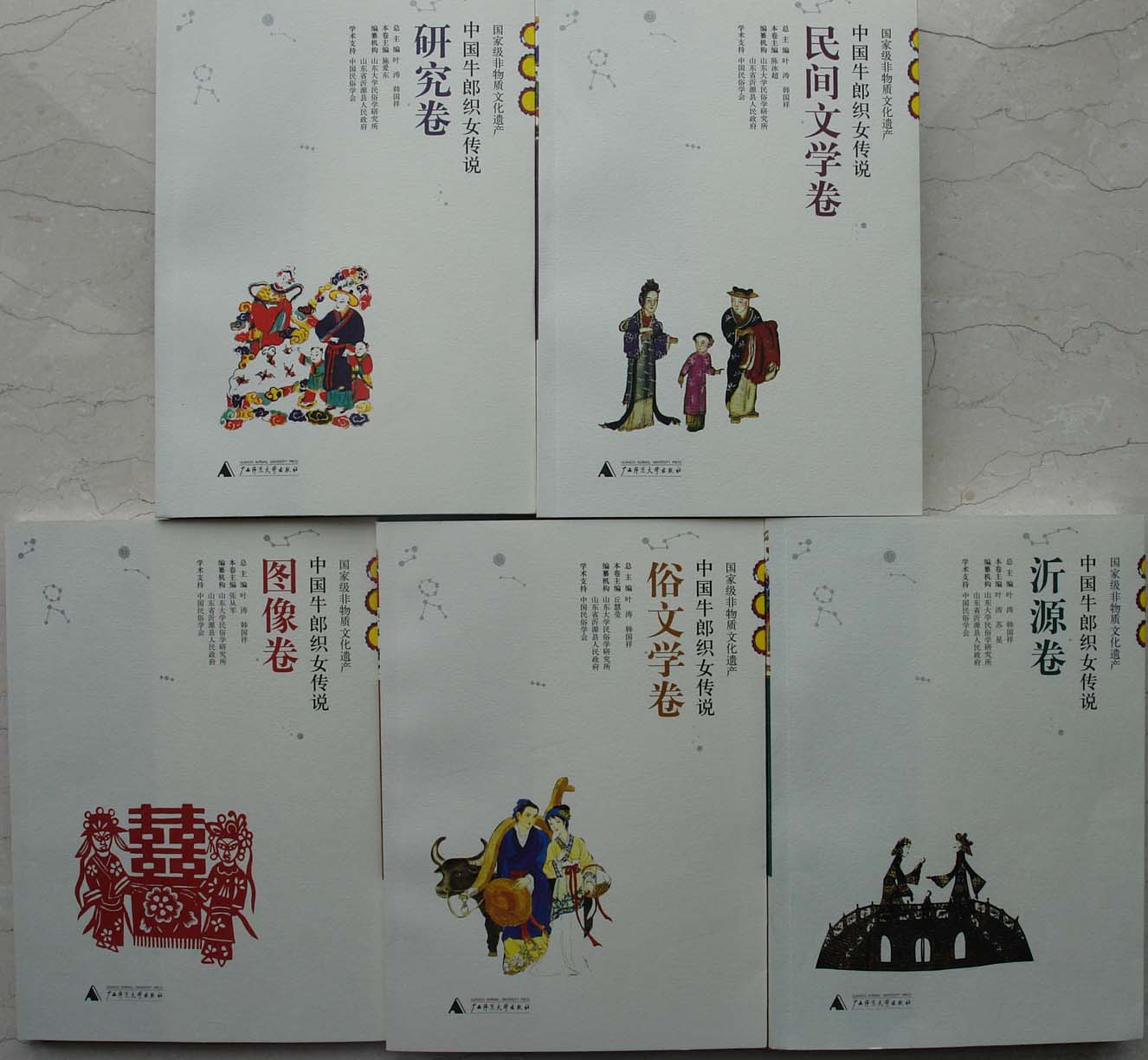 民俗学研究所、山东省沂源县人民政府共同组织编纂,中国民俗学会学术支持的五卷本《中国牛郎织女传说》近日由广西师范大学出版社正式出版。这是我国非物质文化遗产保护领域取得的最新成果,对于促进我国民间文学类非物质文化遗产的研究与保护具有典范意义。