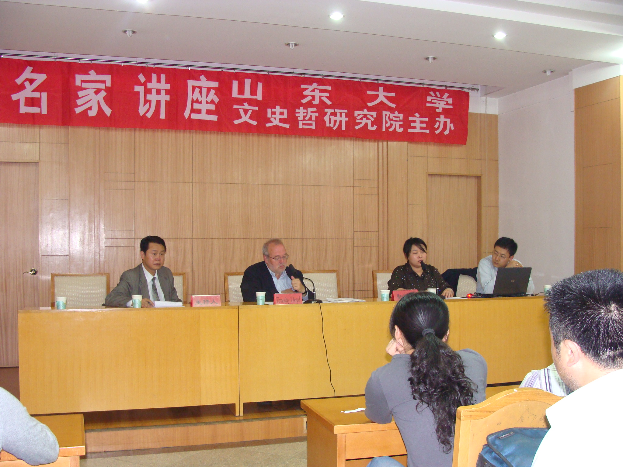 文史哲研究院、历史文化学院、外语学院等70多名师生听取报告,并参加了互动式的讨论。 这次专题报告题目为《史密森民间生活节:一个公众民俗学与非物质文化遗产的模式》,受到了听众的广泛欢迎。根据迪姆•罗仪德(Timothy Lloyd)教授介绍,史密森学会的民间生活节自从1967年创建以来,每个夏天都在华盛顿国家大草坪上进行。这个民间生活节已经变成了展现民俗、民间艺术和民俗文化的世界上最主要的活态博物馆之一。它成为一个有价值的实验室:检验实践民俗志研究新举措得当与否、向公开观众展现民间艺术家和表演者,以及如何在全美国和海外范围内与小区之间形成一个长期的教育伙伴关系。