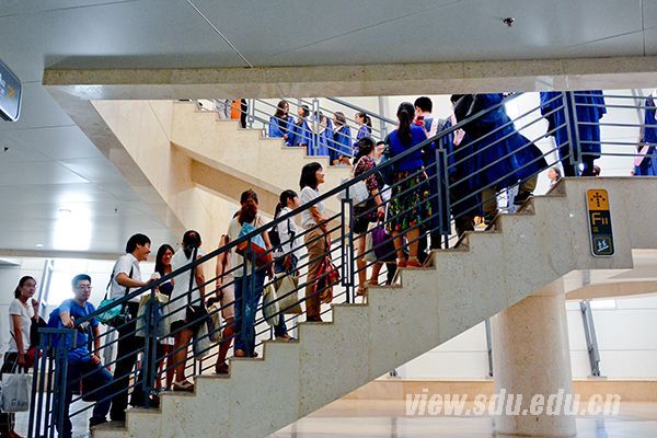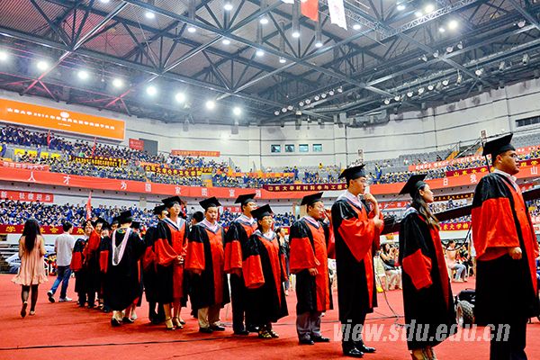 6月21日清晨,2014届本科毕业生有序进入毕业典礼会场