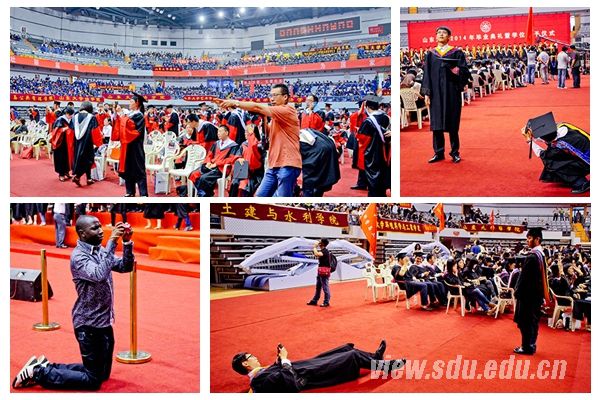 各种奇异的拍照姿势,为庄严的时刻平添欢乐