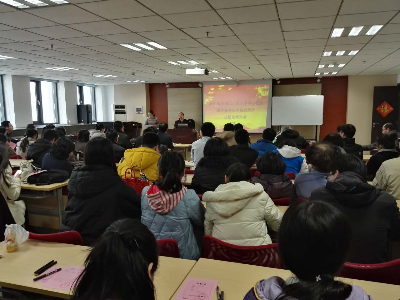 常务副院长王学典教授、副院长杜泽逊教授、学院在职及离退休教师、博士生、硕士生和尼山学堂本科生共计三百余人参加选举大会。会议由黑料