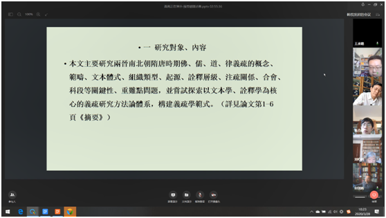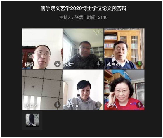 中国哲学、中国古典文献学、文艺学专业博士学位论文预答辩工作采用线上远程视频方式顺利进行。15名教授、博导担任预答辩委员,9名博士生顺利通过学位论文预答辩。
