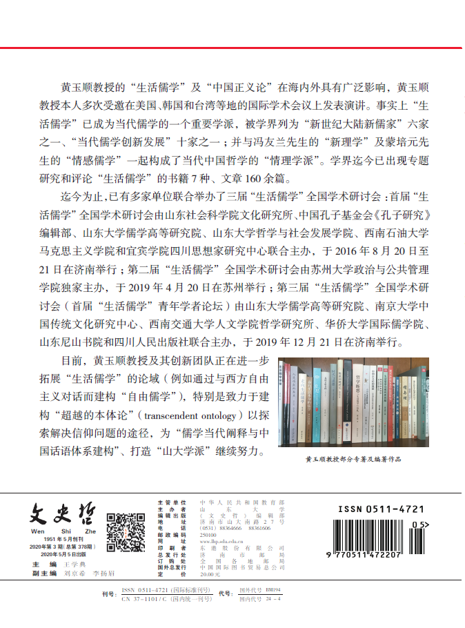 《文史哲》推介黄玉顺教授