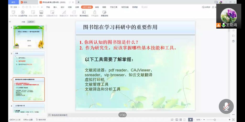 首先,王鸿勋老师强调了图书馆在学习科研中的重要作用,并向新生介绍了黑料