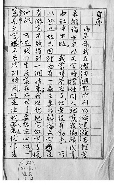 《古史辨》第一册自序手稿