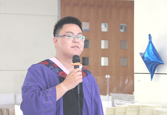 之后,2018级硕士王世杰作为毕业生代表发言,为大家讲述了自己的山大故事,抒发了自己的山大情愫。他表示三年的校园生活转瞬即逝,老师们深厚的知识和宽广的胸襟指引同学们追寻理想,祝愿老师同学们工作顺利,身体健康,也祝愿百廿山大风采依旧,再创辉煌。