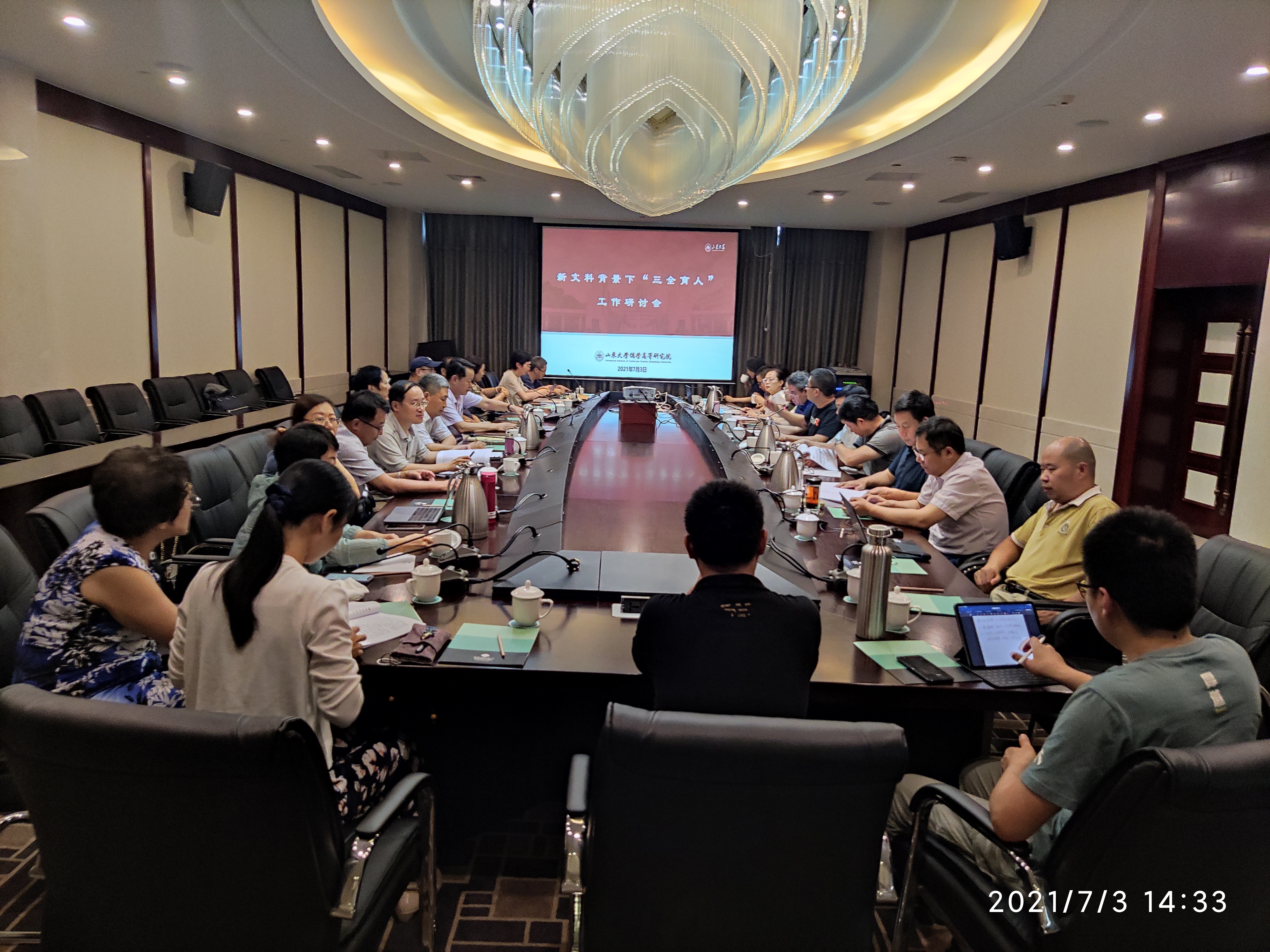 2021年研究生导师工作会议暨新文科背景下“三全育人”工作研讨会在济南市莱芜区召开,执行院长王学典、党委书记李平生、党委副书记李鹏程及30余名研究生导师及研究生管理人员参加会议,会议由副院长王加华主持。