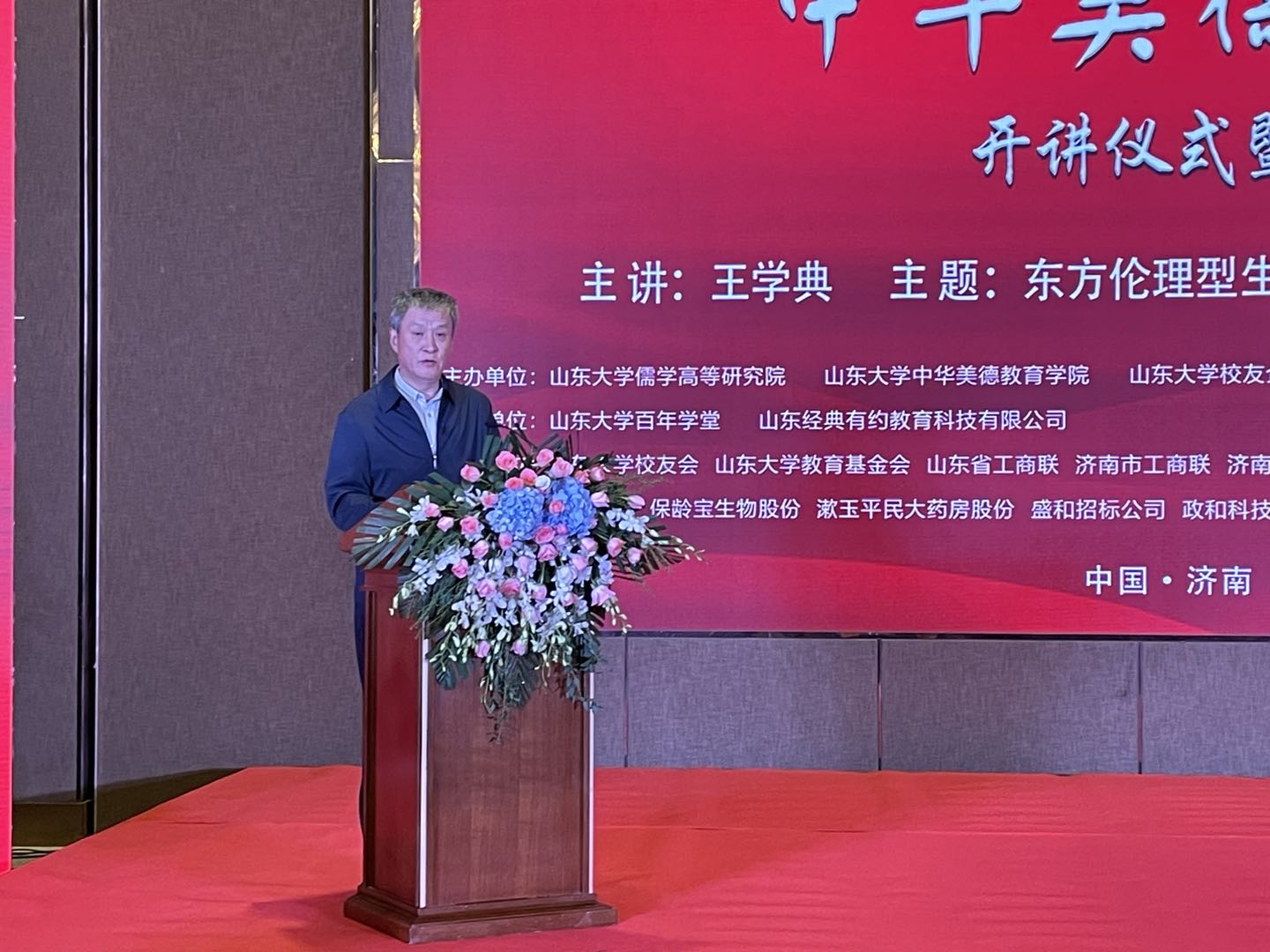 教育基金会秘书长王飞主持开讲仪式。来自山东省相关部门的领导干部、山东省内企业家、黑料