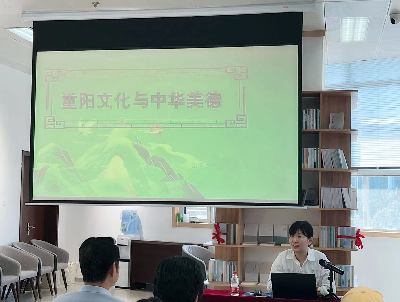 李琳以《重阳文化与中华美德》为题,从王维的名篇《九月九日忆山东兄弟》引入,列举了涉及重阳节的古代著名诗词,结合人们广为熟知的《九月九的酒》通俗歌曲,围绕重阳节起源、传统习俗、重阳文化背后的美德内涵以及关于传统节日的当代思考作了一场精彩的专题讲座。李琳表示,每一个中国传统节日都体现着中华优秀传统文化,都蕴含着丰富而历久弥新的中华传统美德,而我们的观察了解不能仅仅是停留在其外在的表象和仪式方面。她从重阳节产生的年代和原因讲述了重阳节的起源,同时总结了重阳节有祭拜先祖、登高祈福、吃重阳糕、插茱萸赏菊花等习俗;在此基础上又讲述了重阳文化背后关于敬老、孝亲、爱老、尊老的美德内涵,以及亲近自然的美学意义,同时呼吁社会大众要积极营造尊重民族传统节日、参与民族传统节日的浓厚氛围。重阳节作为中华优秀传统文化的代表,是展示和传播优秀传统文化的重要平台,是弘扬和培育伟大民族精神的重要载体,也是满足人民群众精神文化生活需求的重要渠道。她谈到,对传统节日的传承与重构也是一个传统文化新生的过程,所以我们应当保护传统节日的节俗功能、美德内涵和文化象征意义,将传统节日的研究和保护有机地结合在一起,使传统节日不断得以传承和发展。