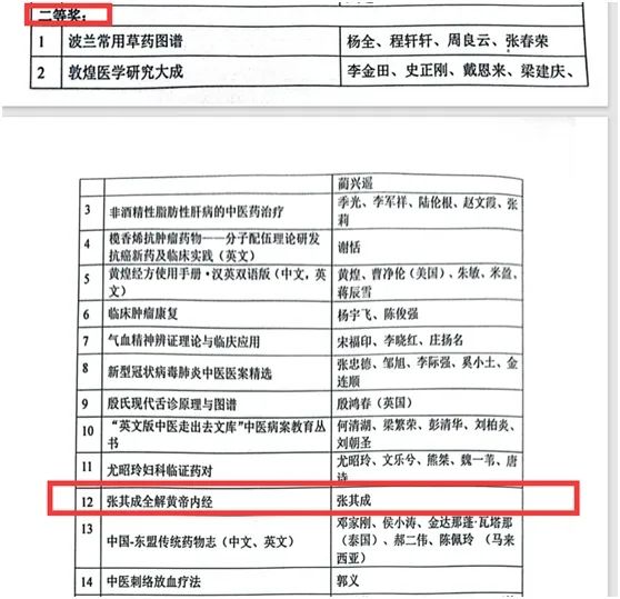 张教授也是中国首位《黄帝内经》博士后,师从《黄帝内经》泰斗王洪图教授。《黄帝内经》是第一部中医学经典,第一部养生学的宝典,也是第一部生命的百科全书。本次获奖著作《张其成全解黄帝内经》于2021年由华夏出版社出版,采用逐章逐篇原文+译文+解读的形式,让读者能够读懂读透《黄帝内经》。同时配合《神灸经纶》善本古图,图文并茂讲述经络运行,出版以来,得到了广大读者的一众好评。