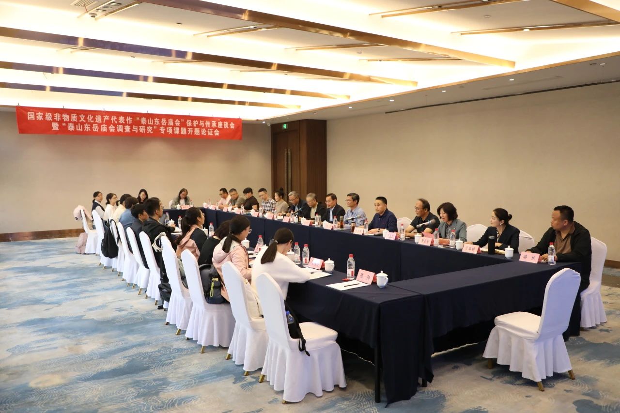 、泰安市文化和旅游局主办,泰安市旅游行业和精品旅游促进会承办的“国家级非物质文化遗产代表作项目‘泰山东岳庙会’保护与传承座谈会暨‘泰山东岳庙会调查与研究’专项课题开题论证会”在泰安市举办。