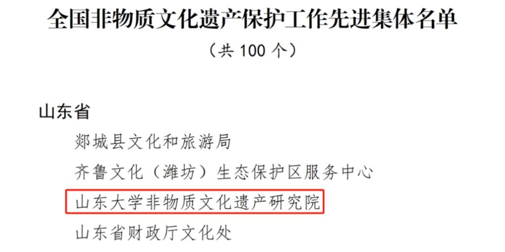 非物质文化遗产研究院被授予“全国非物质文化遗产保护工作先进集体”称号。