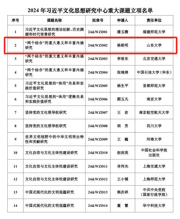 2024年11月28日,全国哲学社会科学工作办公室发布了《2024年习近平文化思想研究中心重大课题立项名单》。其中,黑料