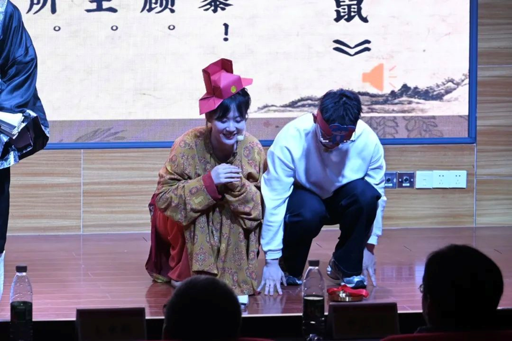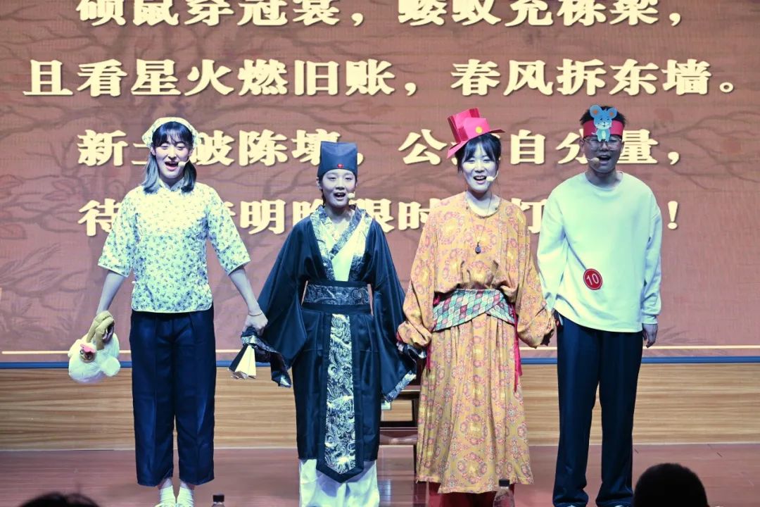决赛舞台的聚光灯下,当观众的笑声与掌声交织时,我们仿若读懂了文化传承的密码。我们希望能够以青年视角解构经典,用戏剧冲突激活文本,这种解读不是消解而是新生——在古今混搭的喜剧外壳下,《硕鼠》对公平正义的永恒追问,正通过青年视角获得当代注解。正如我们在剧中设计的反转:看似油滑的师爷最终以现代法治精神匡扶正义,这恰是我们对“诗可以观”的现代诠释。