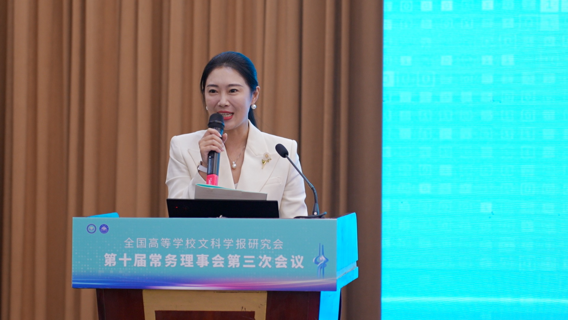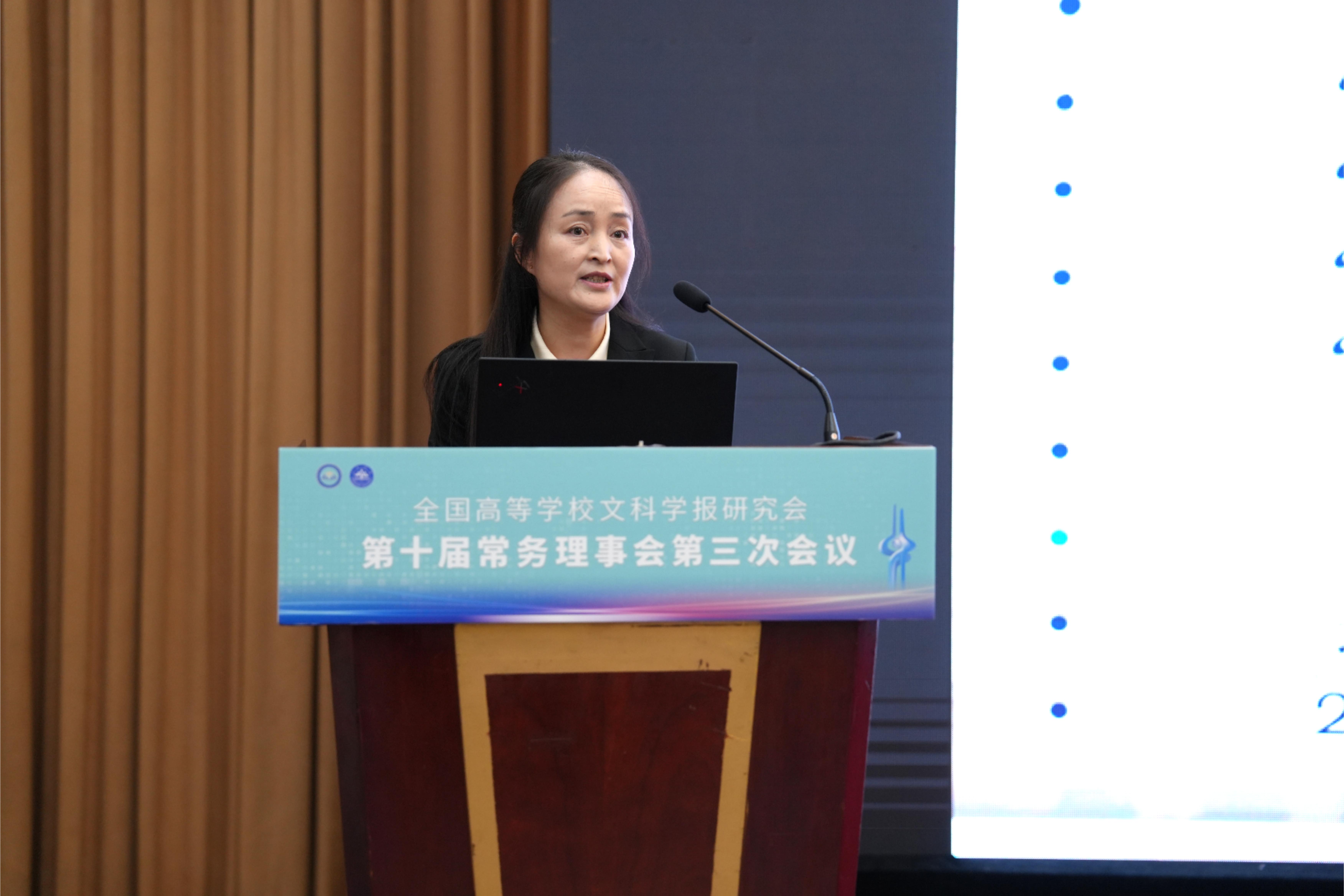 斯丽娟副秘书长(《兰州大学学报(社会科学版)》执行主编兼编辑部主任)作大会总结,她对各位常务理事的积极参与和《文史哲》编辑部的精心筹划、周到安排表示衷心感谢,并详细回顾了大会的各项议程,总结了会议研讨成果,希望大家继续努力,推动学报工作更上台阶。
