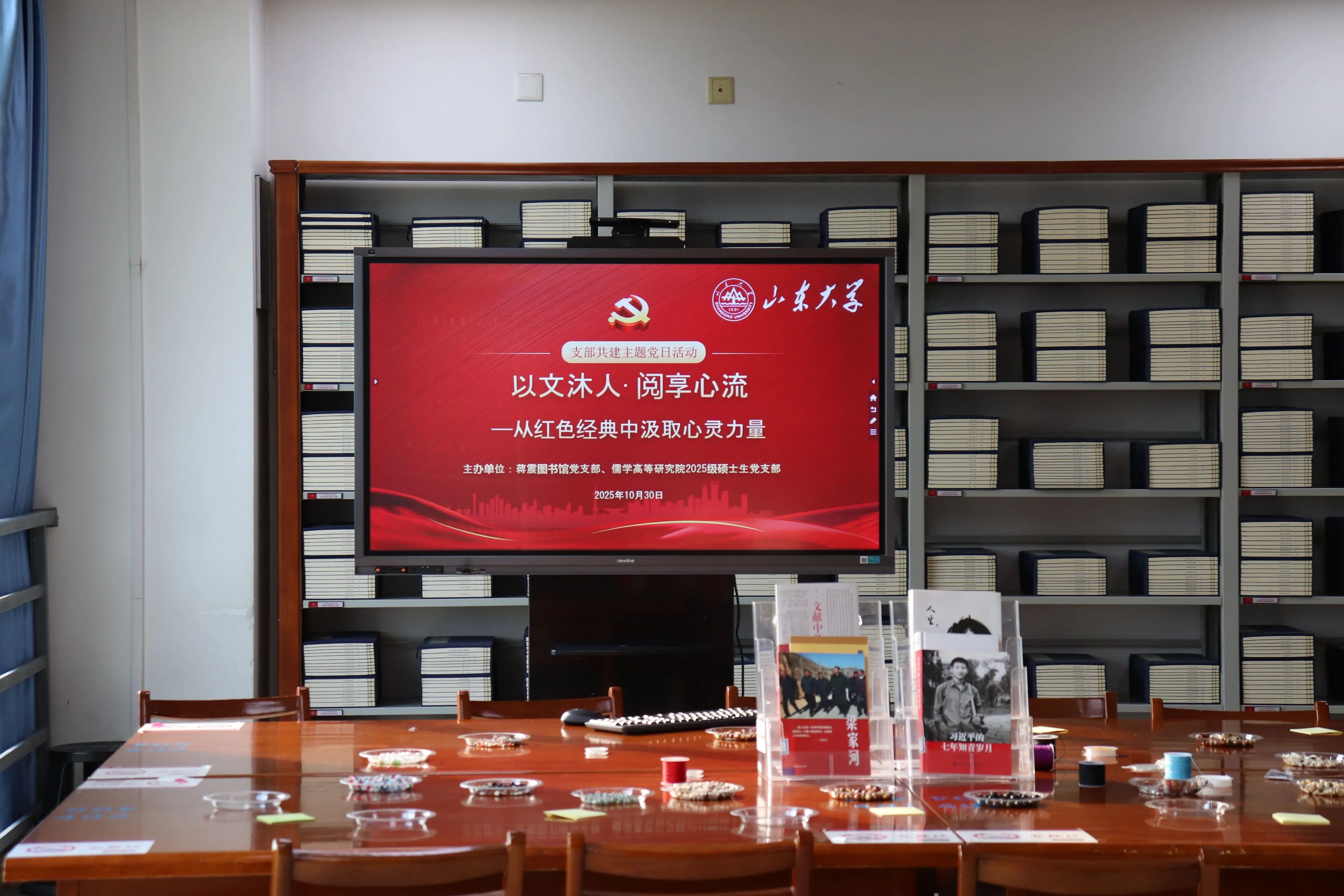 2025级硕士生党支部与蒋震图书馆党支部联合开展“以文沐人・阅享心流——从红色经典中汲取心灵力量”主题党日活动。近30名党员齐聚一堂,在红色浸润与实践体验中锤炼党性,践行习近平总书记对新时代青年的殷切嘱托。