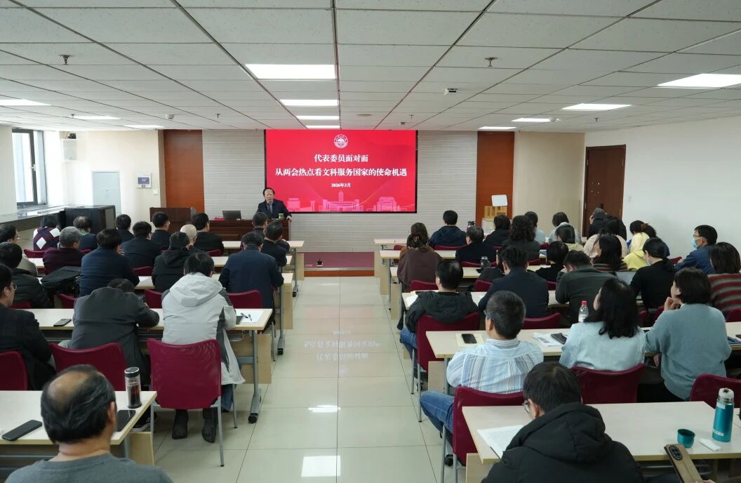院长王学典教授为全院师生作题为《从两会热点看文科服务国家的使命机遇》的专题报告,第一时间传达2026年全国两会精神。
